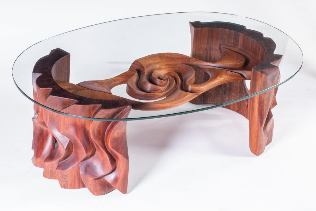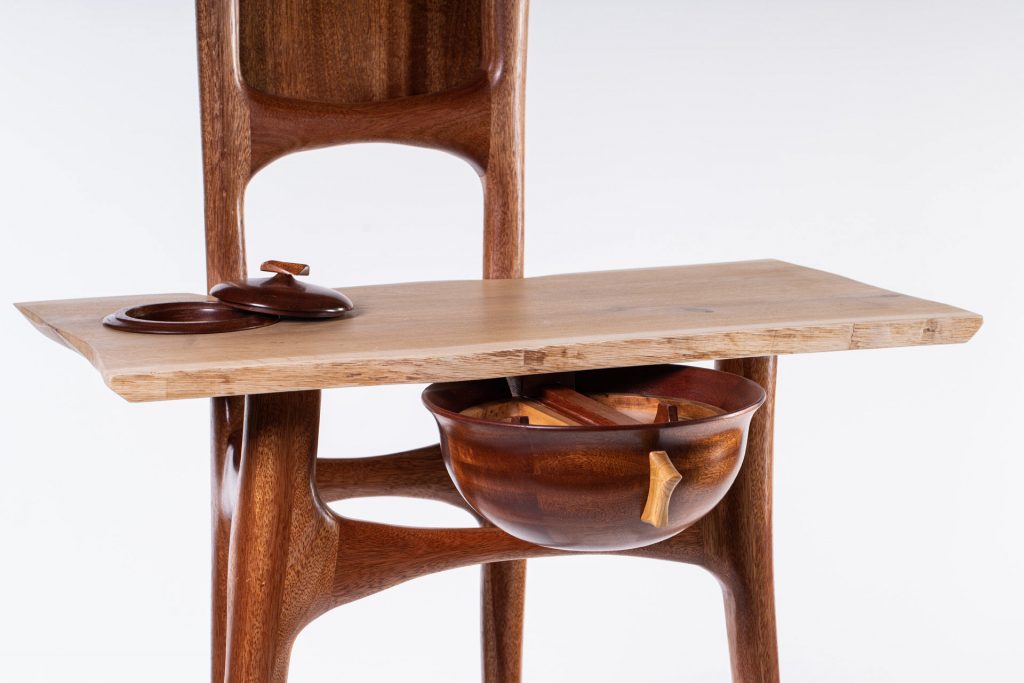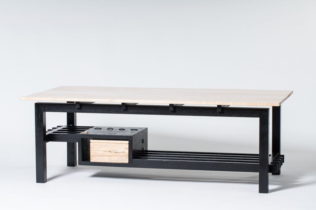רציתי לבנות משהו עדין, ולדבר בשפה שאני אוהב – משטחים, פאזות ופינות נוצצים ומלאי כוונה. מערכות יחסים ומפגשים מדויקים בין חלקים. פשטות ושקט, לתת לעץ לדבר את שלו. כל שטחי הפנים והפינות מפוסלים וחתוכים בכלי יד. העץ העיקרי הוא מקורה ישנה ונדירה שהתאהתי בה מהרגע הראשון ולא יכולתי שלא לרכוש אותה. עדיין נותרה לי ממנה […]