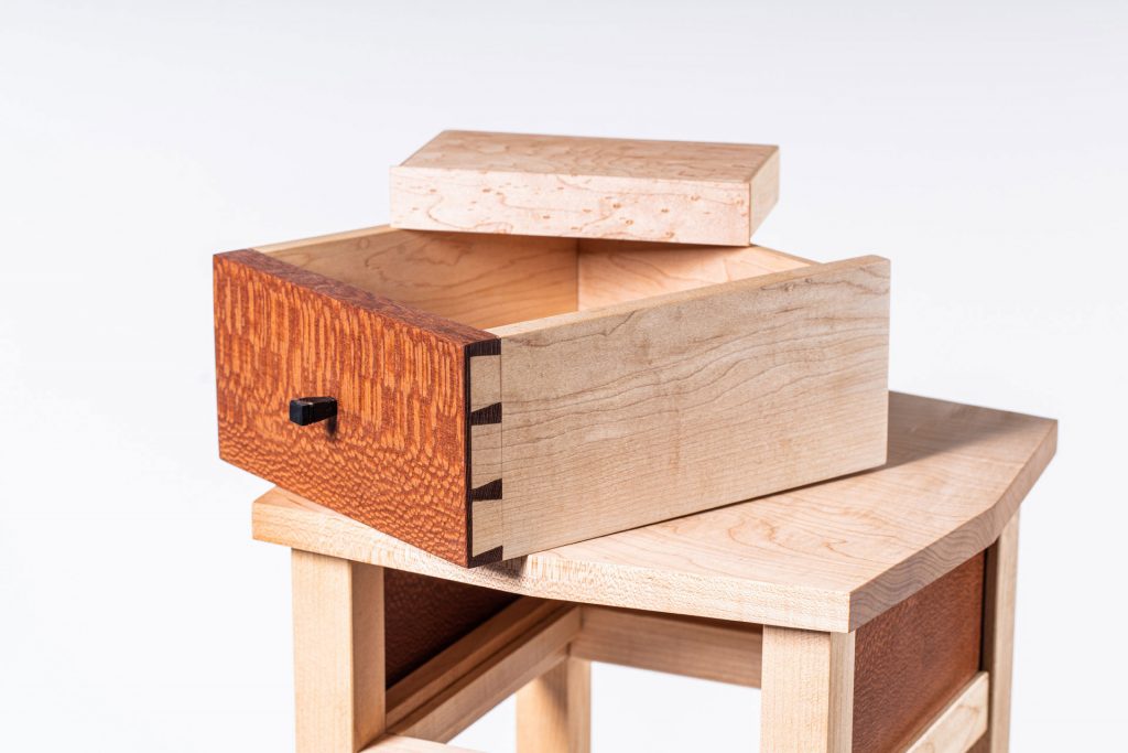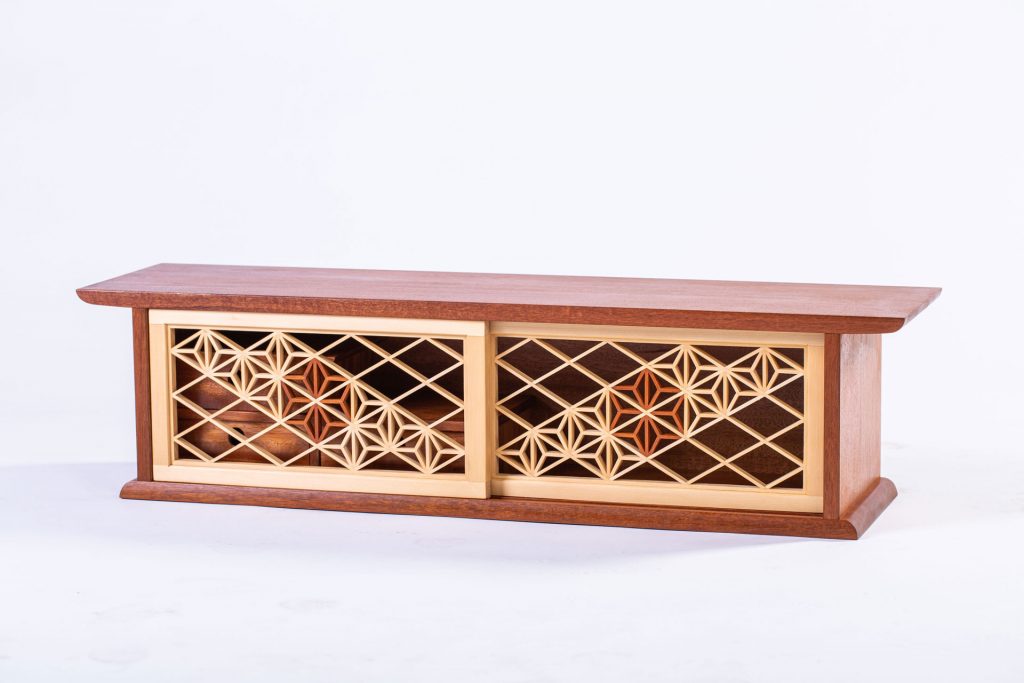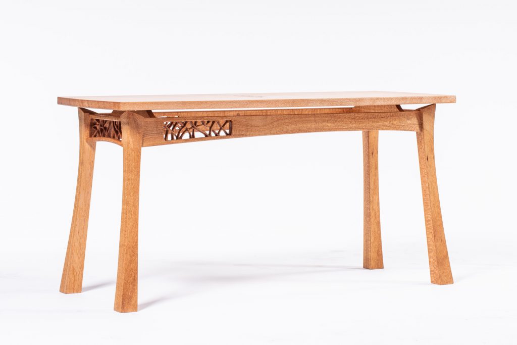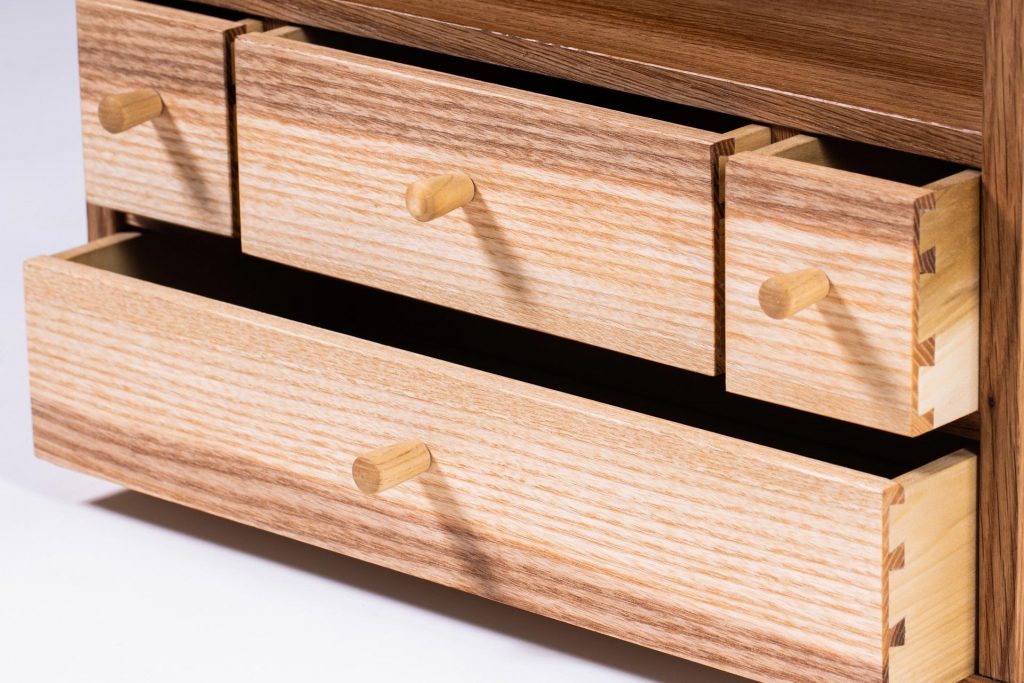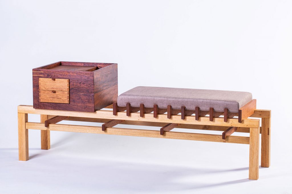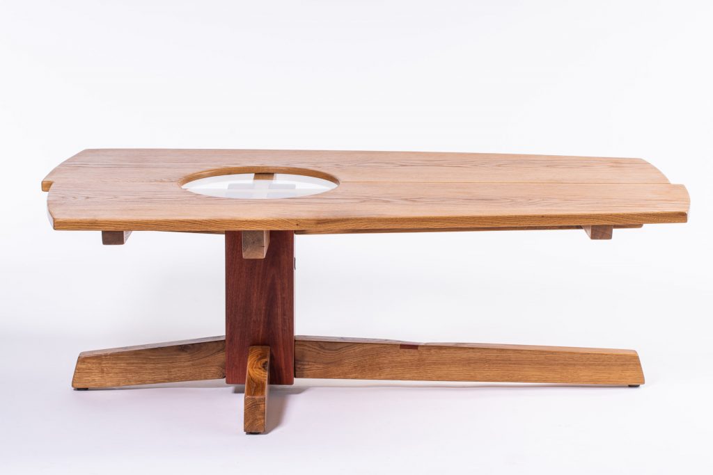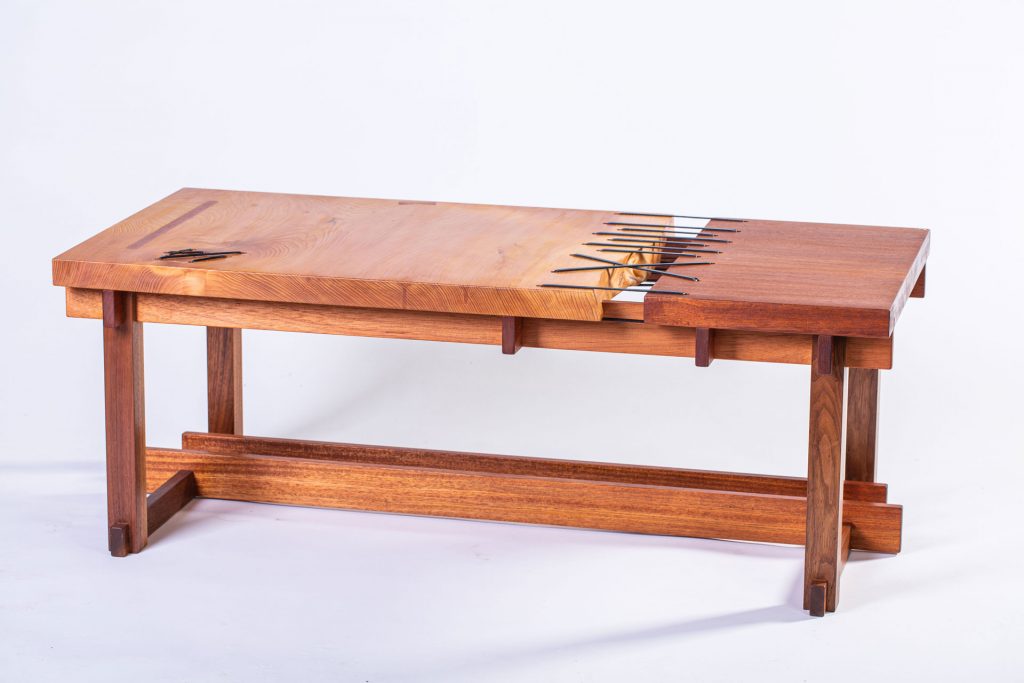 התקווה הייתה ליצור רהיט שקט ועדין שחלקיו יהדהדו אחד את השני ויתקשרו עם החלל שנוצר בין חלקי העץ. העיצוב התרחש תוך כדי הבניה והטיפול בעץ. כך התקבלו החלטות בדבר יחסי הגומלין הצורניים בין המשטח העליון והקושרות התחתונות והחלל שנוצר ביניהן, עיצוב הרגליים, והבחירה בכיוון הנחת דפוסי עץ הנמר כך שישקפו גשם על ים. התוצאה, שידה […]